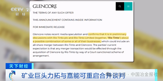 当地时间周四,据《金融时报》报道,全球两大矿业巨头嘉能可和力拓近期重启了合并谈判。双方此前曾就合并进行磋商,但相关谈判在大约一年前破裂。