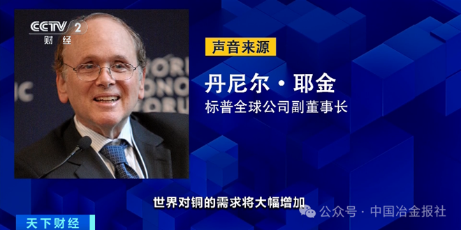 标普全球公司副董事长 丹尼尔·耶金:世界对铜的需求将大幅增加,大约要比现在多出50%,而背后的核心原因在于全球正在加速电气化。按照测算,到2040年,全球用电量将比目前增加约50%。